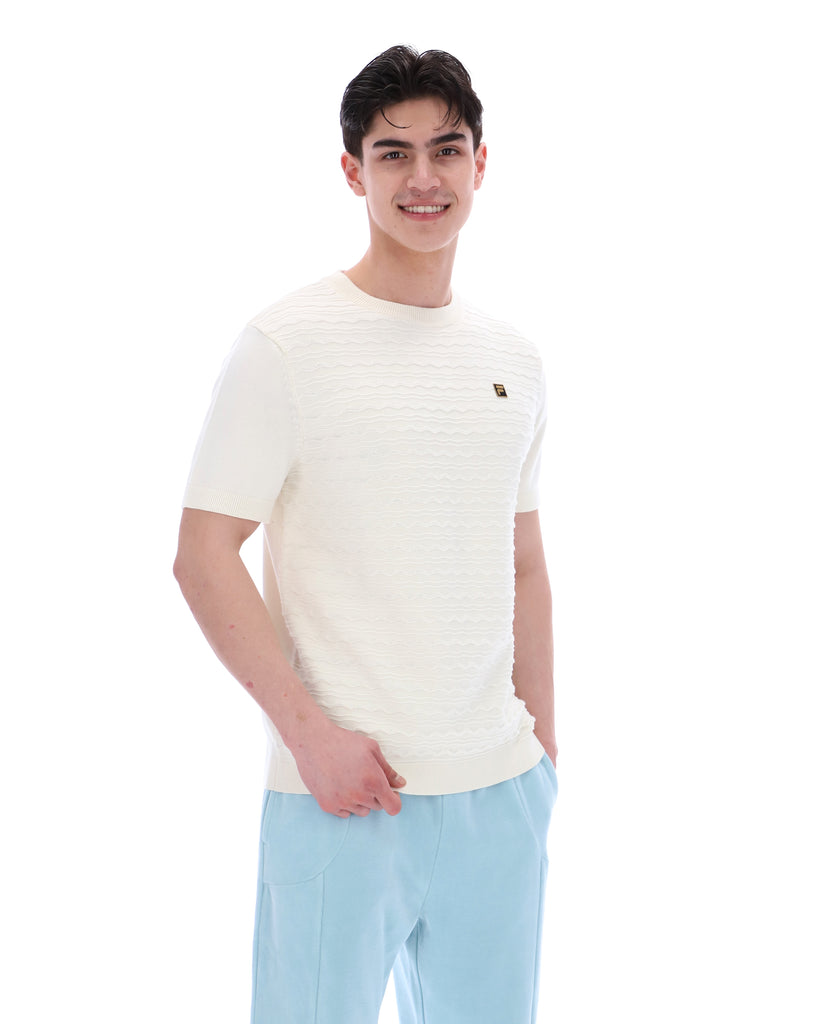 FILA® GOLD DON Textured Knitted T-Shirt/Coconut Milk - SS26