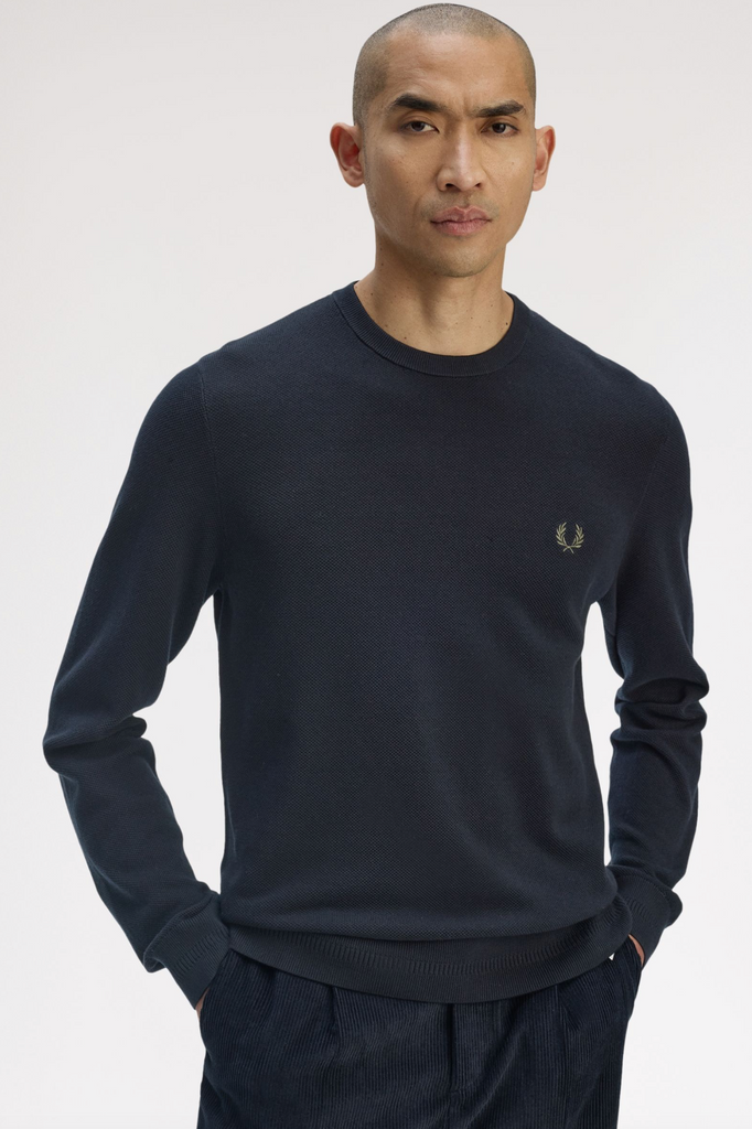 Fred Perry Pique Stitch Jumper/Navy - New AW25