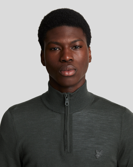 Lyle & Scott® Tonal Eagle Merino 1/4 Zip Jumper/Gunmetal - New AW24
