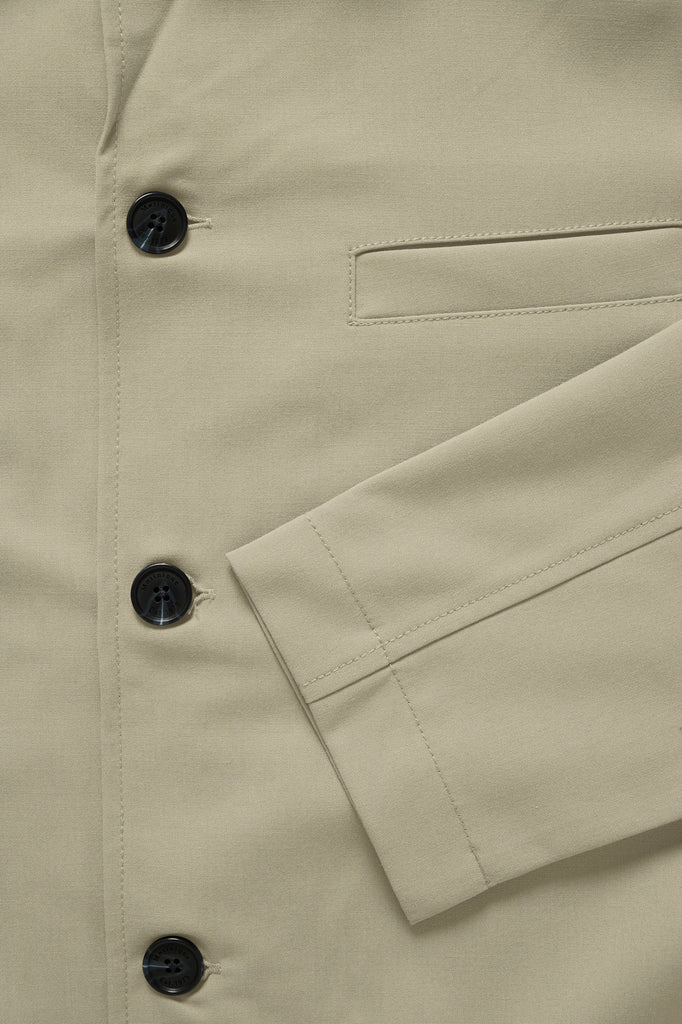 This button-up shirt jacket features a straight fit, notched collar, and long sleeves. Minimalist style with a single chest pocket and smooth appearance, it delivers a modern, streamlined silhouette for effortless dressing.