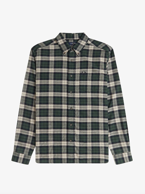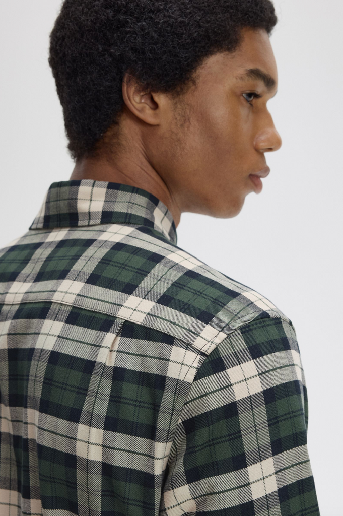 Fred Perry Brushed Twill Tartan Shirt/Court Green - New W25