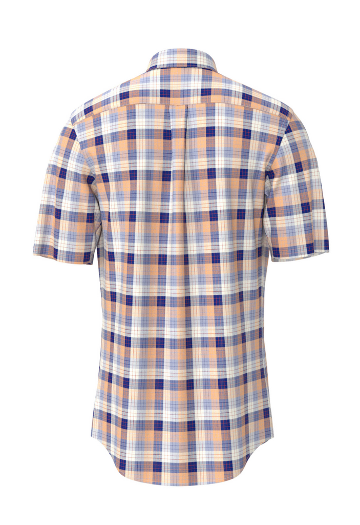 FYNCH HATTON® Colourful Slub Check S/S Shirt/Tangerine - SS26