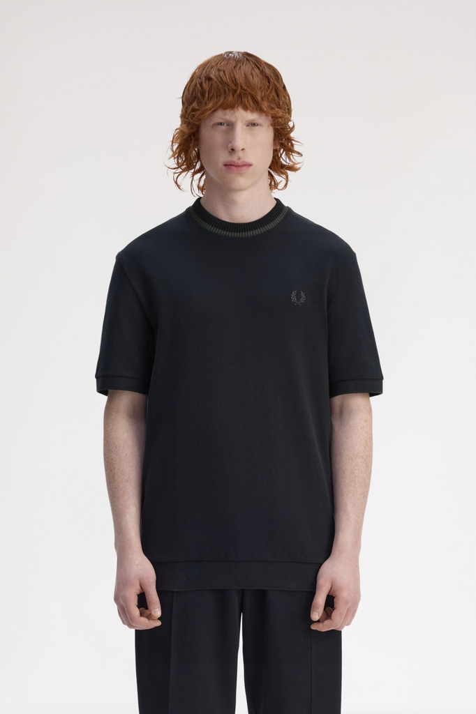 A simple silhouette in an elevated fabric, featuring unmistakable Fred Perry details. Constructed from the same signature cotton piqué that belongs to our beloved polo shirts and signed off with single tipping to the crew neck inner edge.