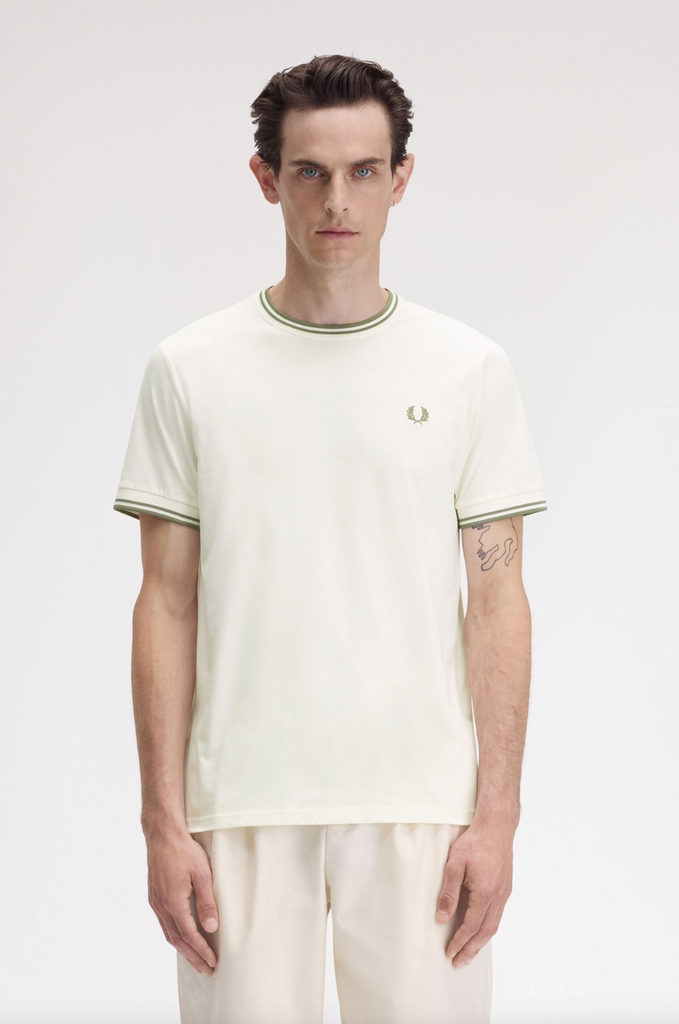 Fred Perry Twin Tipped T-Shirt/Light Ecru/Olive - New SS25
