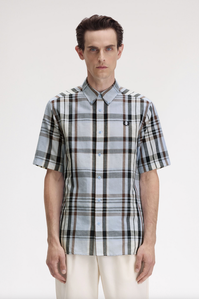 Fred Perry Madras Check SS Shirt/Light Smoke - SS25 SALE
