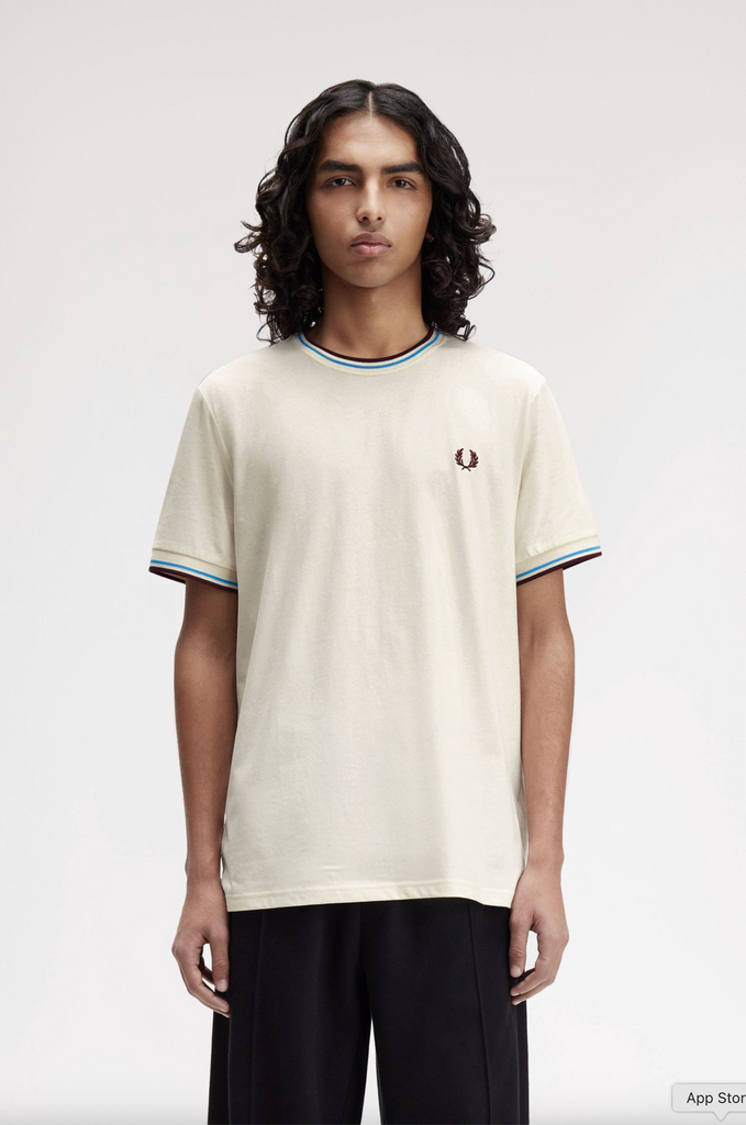 Fred Perry Twin Tipped T-Shirt/Ecru/Court Blue - New AW25